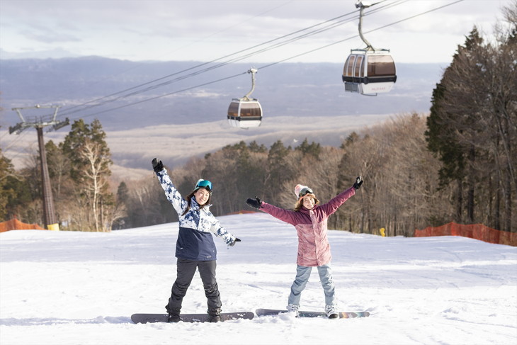 マウントジーンズ那須は、初級から上級コースまで揃って全5コース。2本のリフトに1本のゴンドラが架かり、機動力も抜群。ベースから山頂までゴンドラを使って快適にアプローチできるのが魅力。乗車中の眺望も楽しんでほしい。