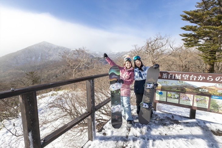 まず天気が良ければ展望台へ。この日は残念ながら山容が完全に見ることはできなかったが、本来ならここから茶臼岳・朝日岳など那須連峰の絶景が楽しめるのだ。思い出の記念写真を撮って、SNSなどに「映える」写真を投稿するにはもってこいのスポットだ。