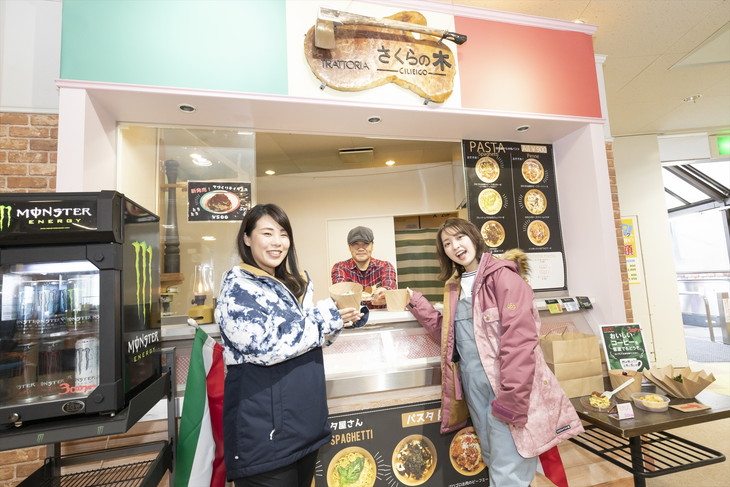 今シーズンにオープンしたパスタ専門店「さくらの木」も女性から大好評。本格的で美味しいパスタにティラミスまで、テイクアウトで気軽に食べることができる。