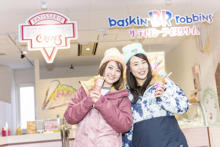 休憩や食後はもちろん、たっぷり滑った後に帰る前の「ご褒美スイーツ」としてオススメなのが、スキー場の定番「マリオンクレープ」。