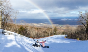 マウントジーンズ那須の山頂には開放感たっぷりの広大なスペースが「雪遊び広場」として設けられ、魅力的なアクティビティも用意。スノーボードやスキーをしない人でも、年齢も関係なく、ゴンドラで気軽に往復できるのが魅力。