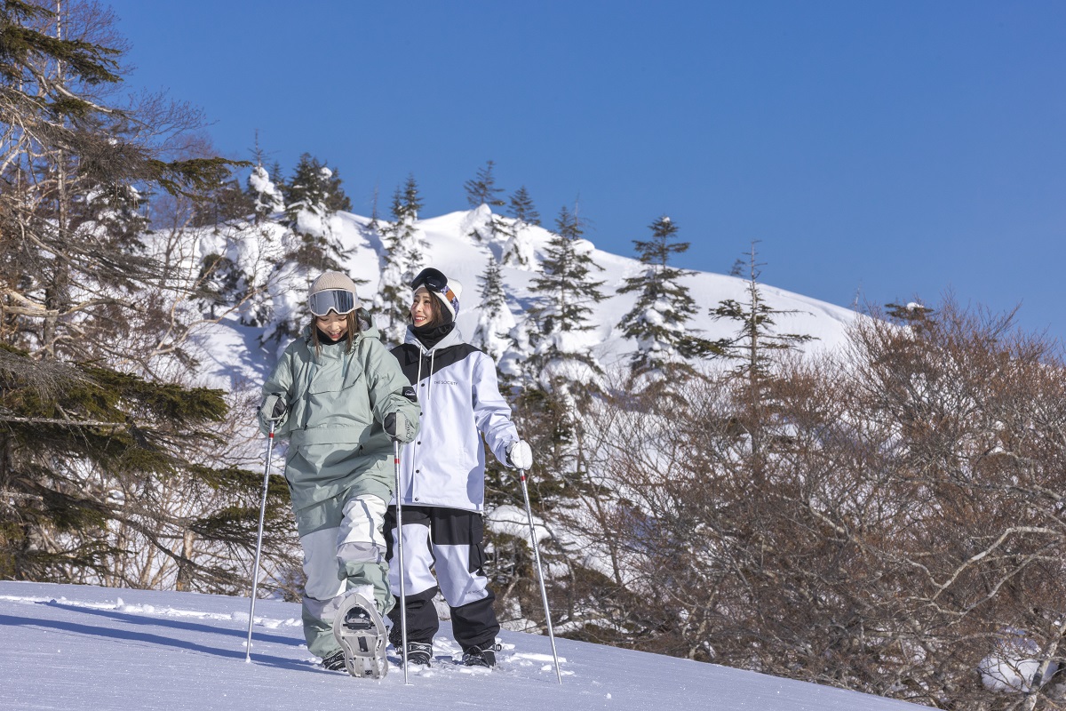 初日は移動で疲れた体を解放しに、スノーシューツアーを体験。ホテル内で受付を済ませ準備が整ったら、さっそくガイドさんとともに「雪上探検ピクニック」へ!スノーシューを履いて、スキー場から外れた静かな白銀のフィールドをのんびり歩いたり、面白い地形を探して雪と戯れたり。いつもとは違う雪山の過ごし方はわくわくドキドキの連続で、最高に贅沢な時間となるはず。
