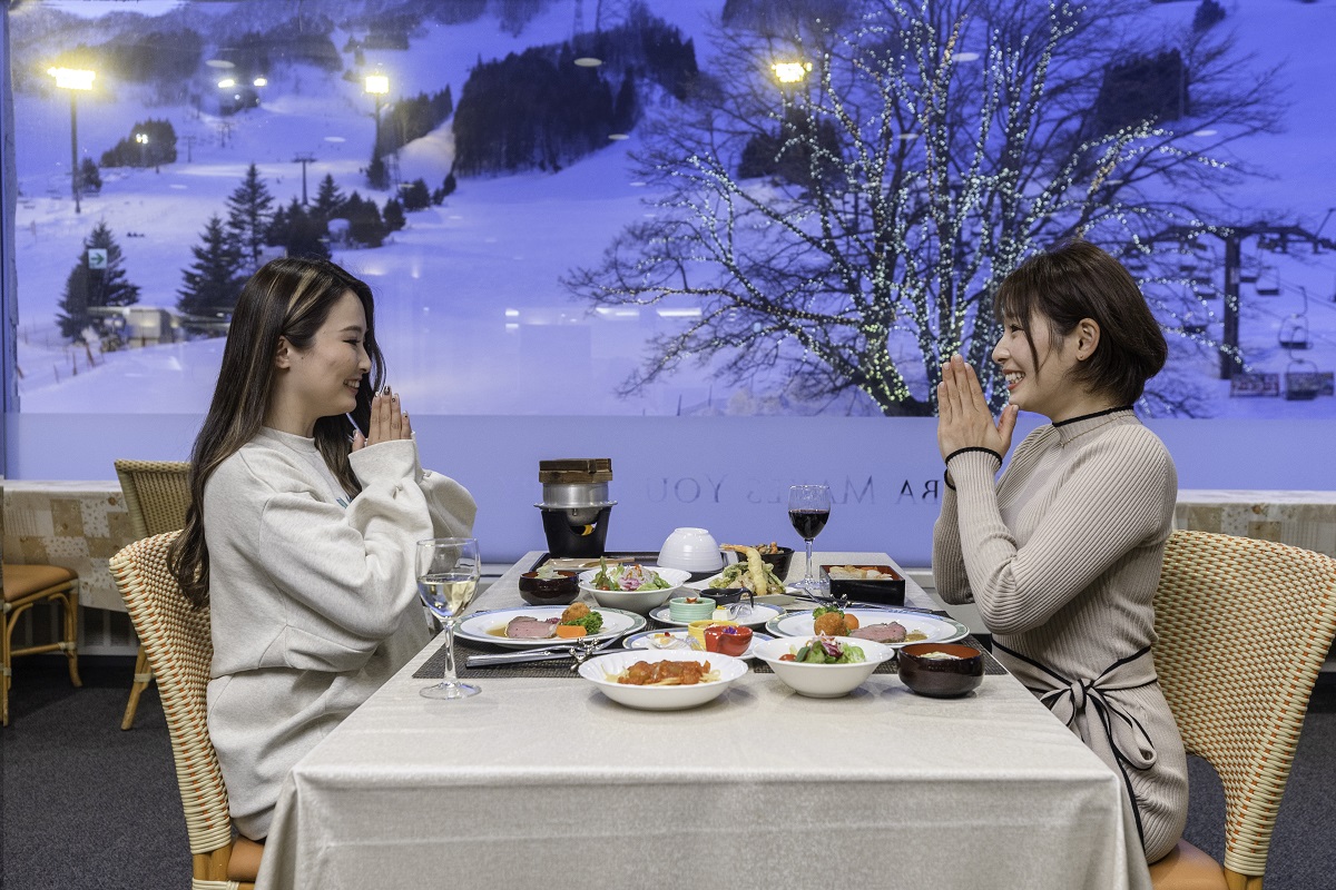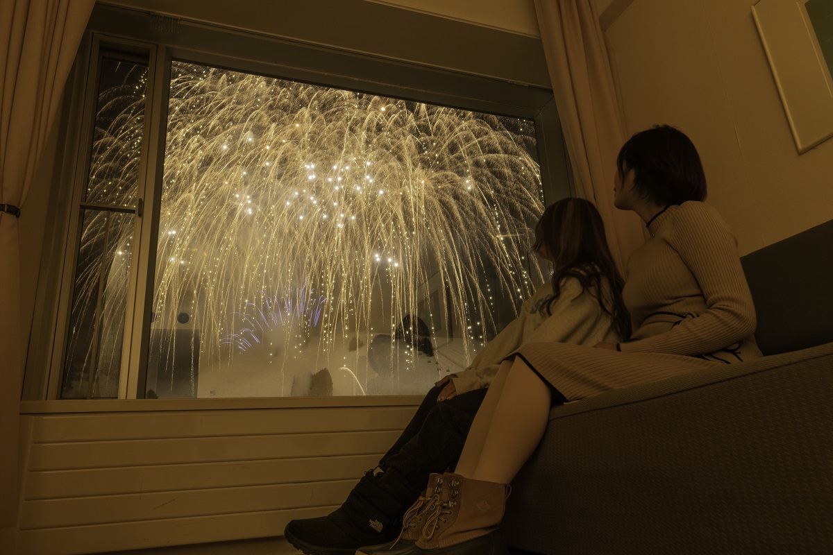 お腹も満たされたら、明日に備えて部屋でゆっくり……の前に、冬の風物詩である苗場スキー場のゲレンデ打上げ花火が待っている。真冬の澄んだ空に打ち上げられる鮮やかな花火を、窓いっぱいに暖かな客室から見ることができるのは、言うまでもなく宿泊者だけの特権だ。