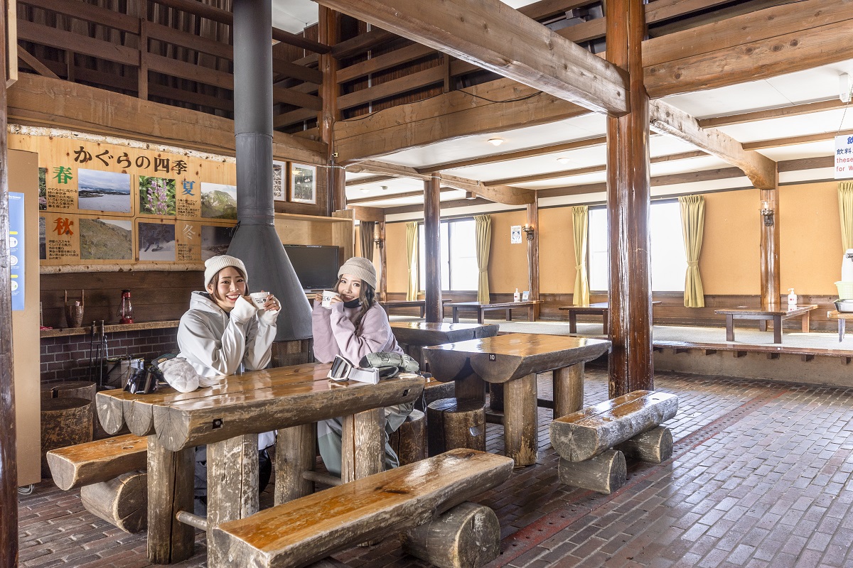 広いゲレンデ内には、休憩もできるレストランが全5カ所。かぐらのゲレンデほぼ中央に位置する山小屋風レストランの「和田小屋」では、けんちんうどんやカツ丼などの和食メニューが充実。土・休前日には宿泊もできる和田小屋で、暖炉を囲みながらホッとするひとときを。
