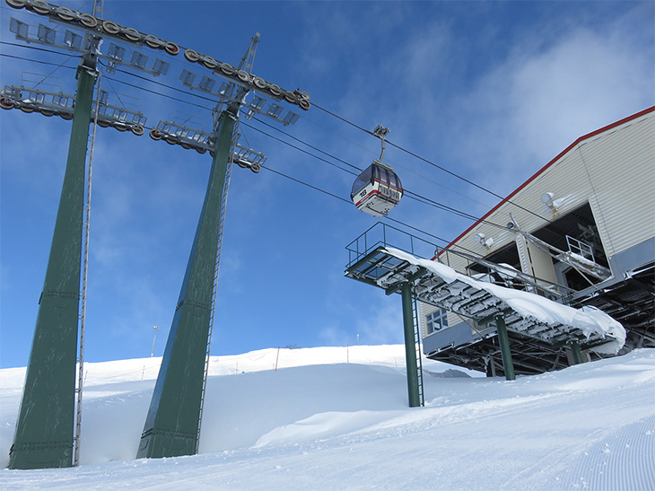 さらにその左側に位置するのは、卵形のコロンとしたゴンドラが目を惹くニセコビレッジスキーリゾート。初級者用コースもあるが、どちらかと言うと中級~上級者にオススメのゲレンデで、様々な起伏、急斜面、沢地形、そして最長約5kmのロングラン! もちろん、パウダーを楽しめるポイントも点在している。“なまら” “じゃがいも”といった、北海道にちなんだコース名も面白い。また、世界的高級ホテルとして知られるヒルトン ニセコビレッジからも直結していて利便性もよい。