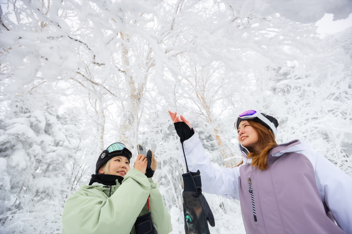 山頂では幻想的な樹氷など、滑る楽しさだけではない、リフト乗車中も滑っているコースでも今まで見たこともない景色などに感動する機会も多い。