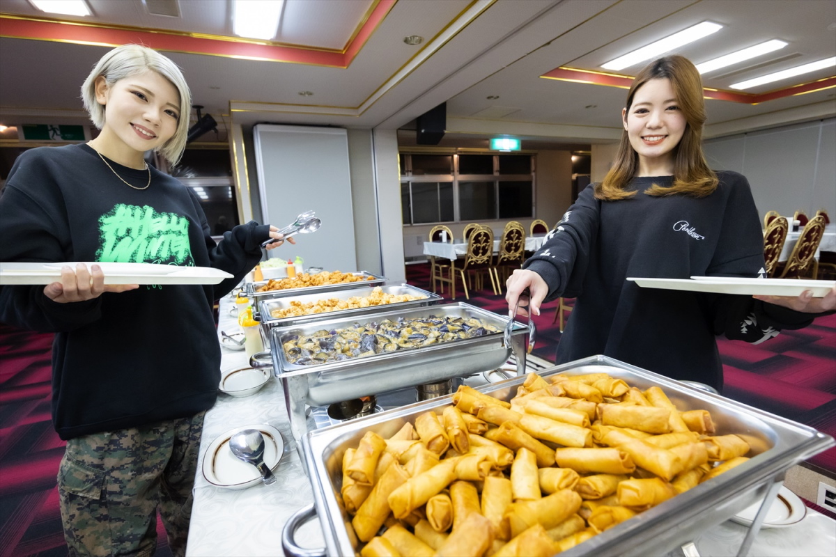夕食はバイキング。たっぷり滑ってお腹がペコペコになっているから、好きなメニューを好きなだけ食べよう。別料金(ツアー予約時にのみ追加可)で「すき焼き」や「チゲ鍋」を注文することもできる。