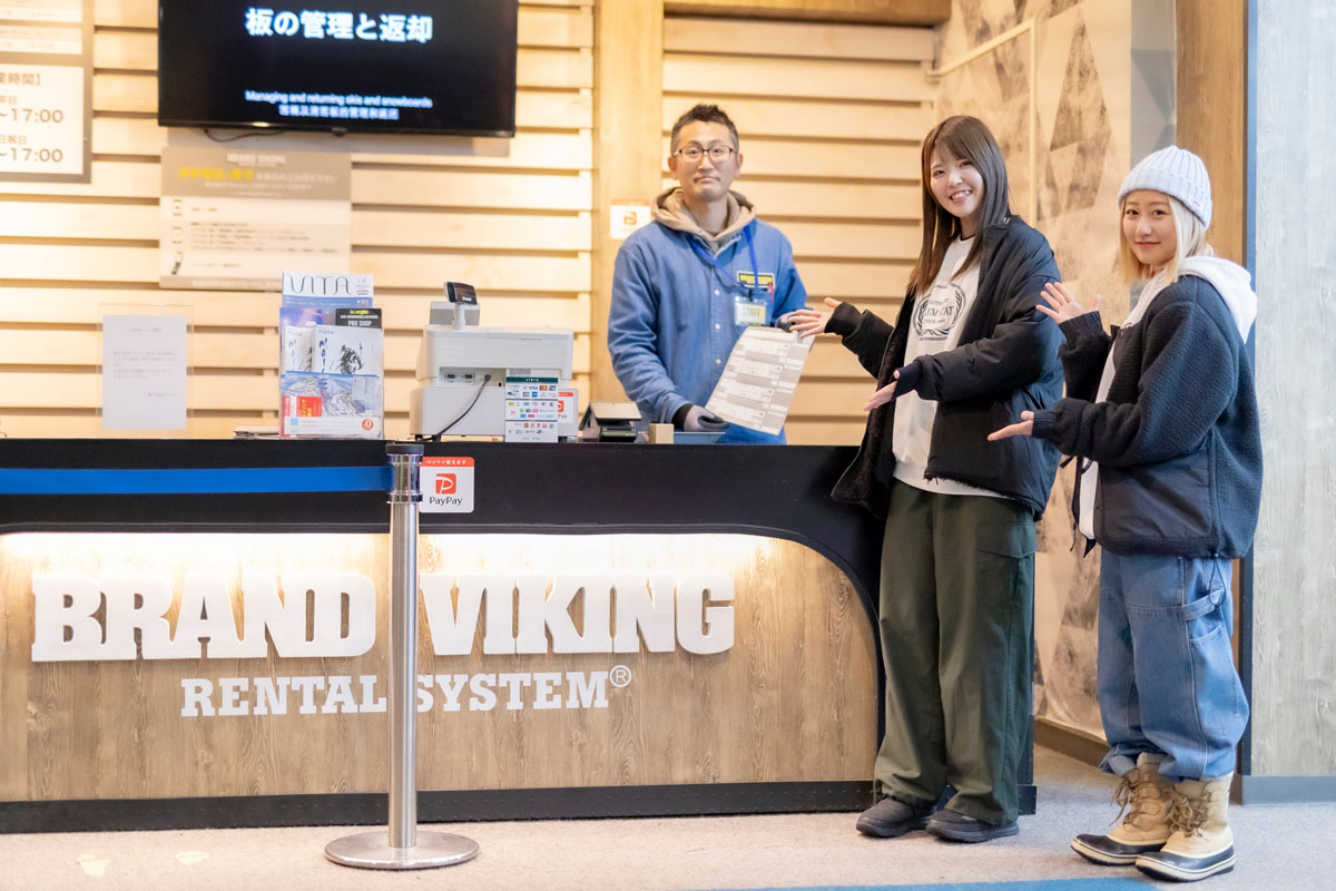 舞子のレンタルは「BRAND VIKING RENTAL SYSTEM(ブランドバイキング・レンタルシステム)」を採用。自分の使いたいスノボやブーツ、着てみたいウエアを自由に選ぶことができる。どれを選べばいいかわからない場合は、もちろんスタッフにアドバイス&セレクトをお願いすることも可能だ。しかもレンタル時間内であれば交換することも自由。午前スノボで午後はスキー、という楽しみ方もできるのだ!