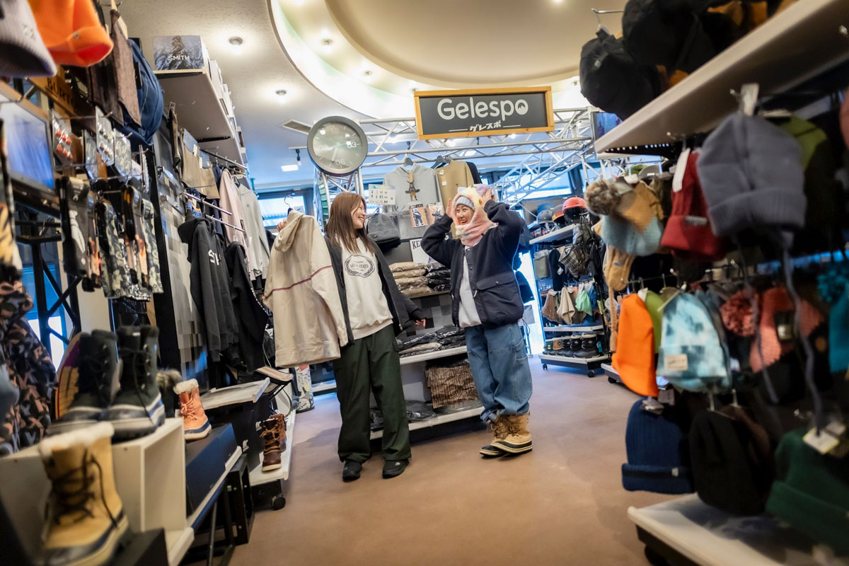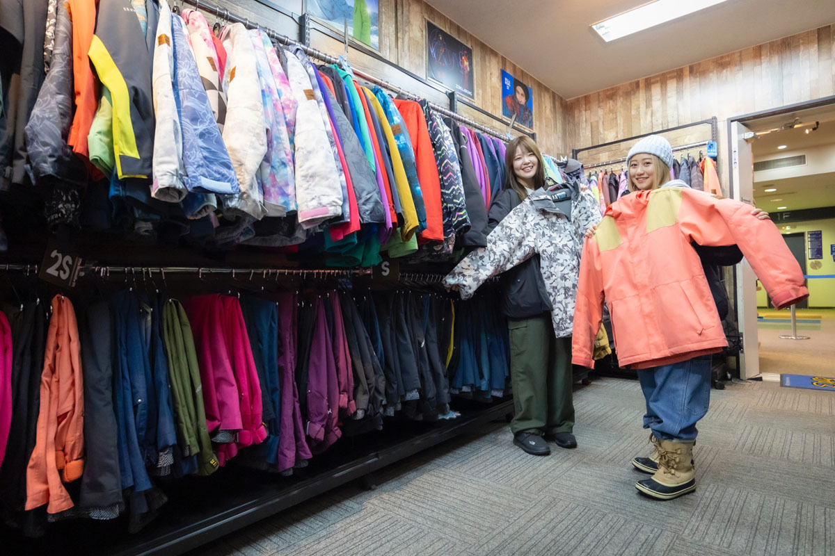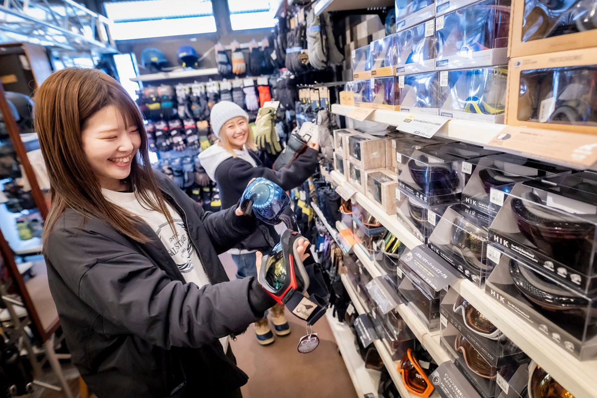レンタルがないビーニー(帽子)やグローブなどのアクセサリー用品などは事前に用意しておくか、センター内のショップで購入することも可能。スキー&スノボ用品の品揃えが充実しているので、ちらっと立ち寄って見ているだけでも楽しめる。