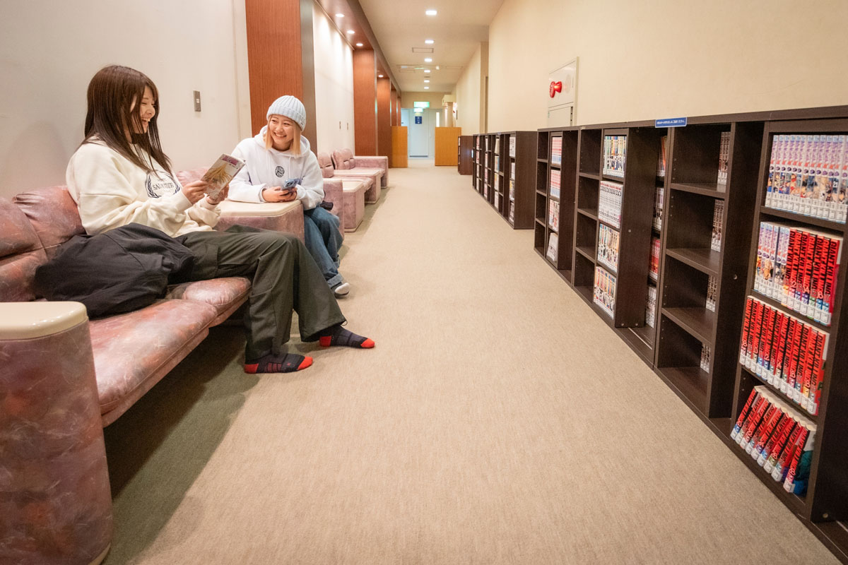 入浴後は、廊下に置いてあるソファーと漫画で、時間が許す限りリラックスタイムを楽しめる。