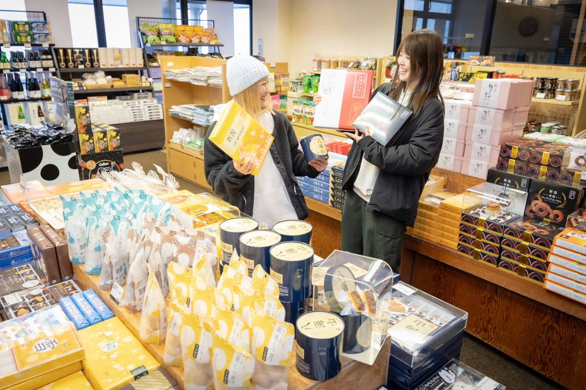 また帰りがけのお土産品の購入はスキーセンター1階の売店へ。新潟ならでは特産品、お米を使用したお菓子などもずらりラインナップ。美味しい日本酒も置いてあるので、お酒好きな人へのお土産にもおすすめ!