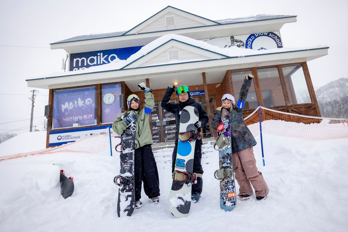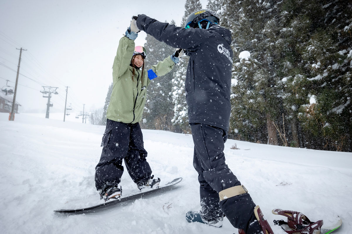 もっと上手く、しっかり滑れるようになりたいと思ったら、思い切ってスクールを利用するのもおすすめだ。間違いなくレベルアップは早い。しかも「舞子スノースクール」ではスノーボードデビューを安全安心にサポートする30分程度の無料レクチャー「スマイルレッスン」を開催。