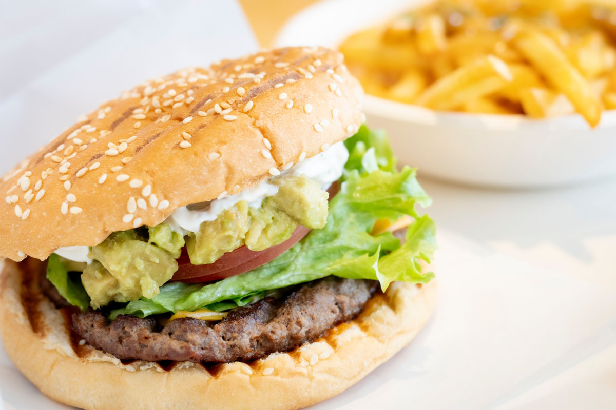 写真の「アボカドチーズバーガー」が女性に人気で、男性なら「舞子ビッグバーガー」で攻めてほしい。写真の奥に写っているフライドポテトに濃厚ソースとチーズをトッピングした「プティン」もぜひ食べてほしいメニューだ。