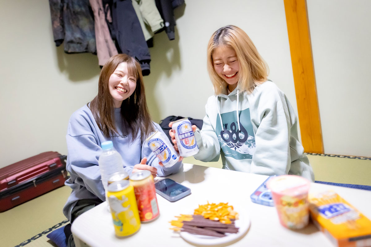 そして、おやすみ前の部屋呑みも、友達との楽しい思い出になること間違いなし。たくさん滑って、たくさん食べて、たくさん呑んで、たくさん寝る。幸福確定!