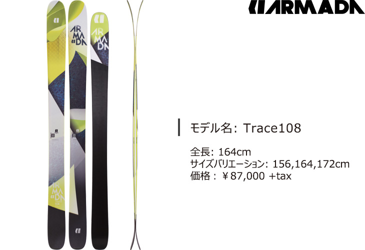男性向けに開発されたTracerのレディース版がTrace。グラフィックはもちろんのこと、スキー自体の厚みを変更することで軽量化とソフトフレックスを実現。女性ライダーでもディープなパウダーからツリーランまで思いのままにスキー操作をすることができる。センター幅88~108までの3モデルが用意されているのでレベルやシーンに合わせて選択可能。