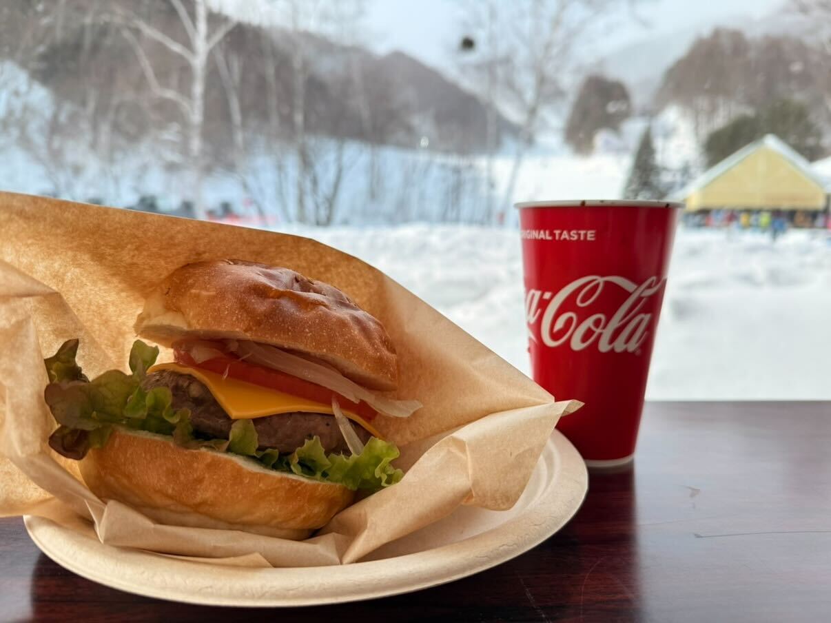 今回はホテルの裏手にある、カフェラウンジ「モンブラン」で「ビーフ100%ハンバーガーセット」をいただきました!沼田市にある「岩鞍パン工房」のこだわり天然酵母パンを使用した、絶品バーガーです。