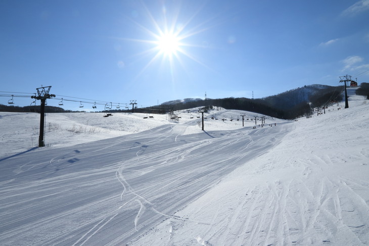 最大コース幅が210mと広く快感度の高い滑りを満喫できる。ベースにゲレンデレストランがあり休憩に最適。