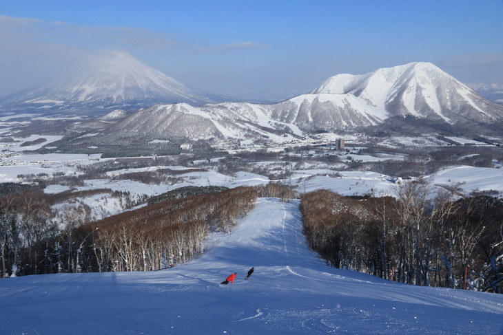最初はやや斜度が急だが、ルスツリゾート全体と羊蹄山を見渡せる素晴らしい景色が見られる絶景コース。