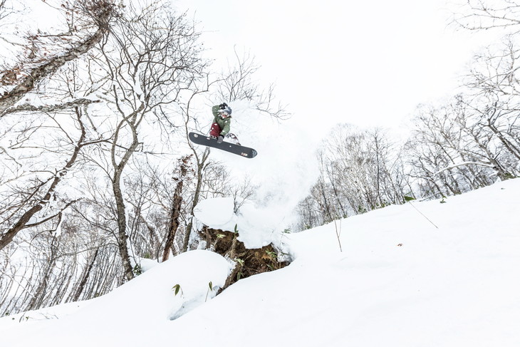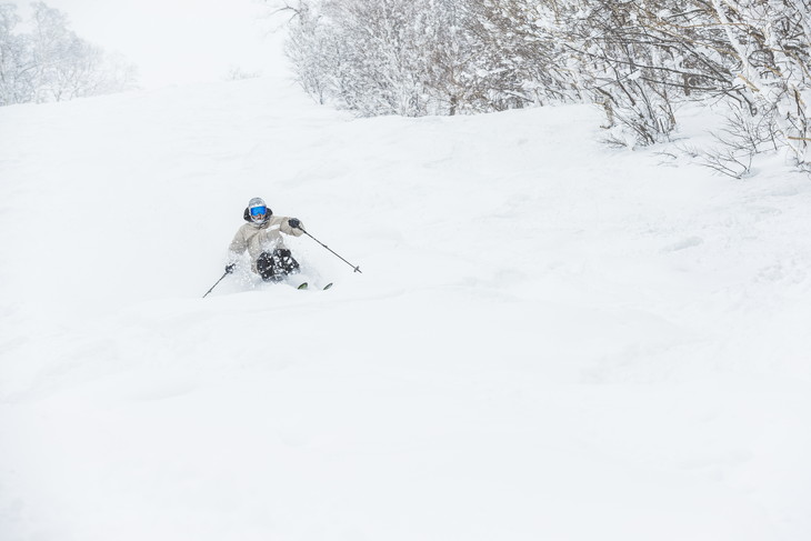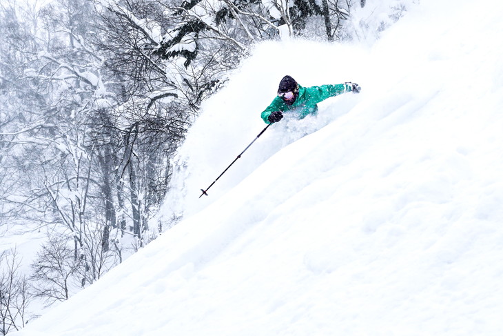 雪が降った直後にはルスツのサラサラ極上パウダーを満喫。沢をハーフパイプのように滑ったり自然地形ならではの楽しみ方ができる。