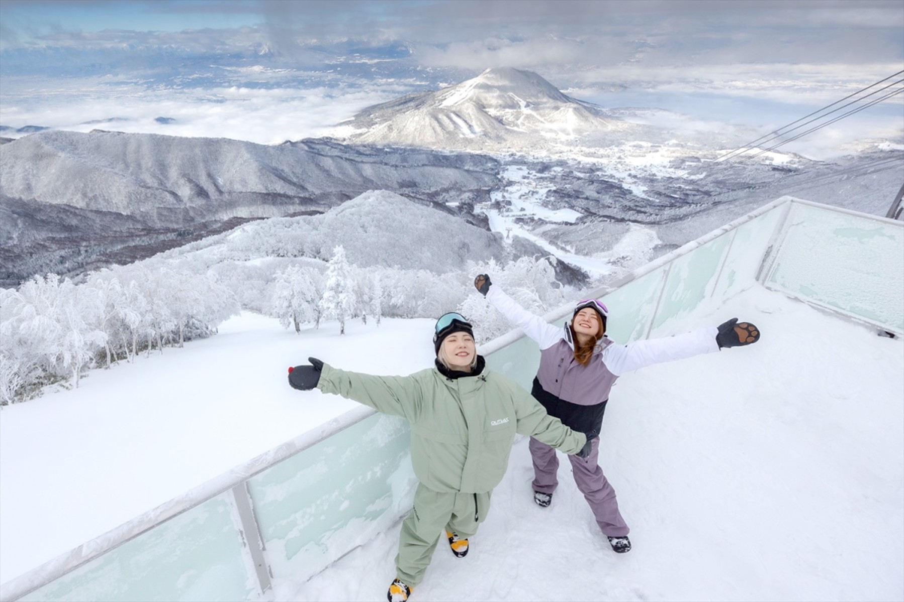 スキーやスノーボードをしない方には、バギークルーズプランがおすすめ。山麓からバギーに乗って中腹のロープウェイ乗り場へ移動し、ロープウェイで山頂の「SORA terrace」へと向かいます。山頂では景色を眺めたり、カフェでくつろいだりすることができ、気軽に絶景が楽しめると人気のプランです。