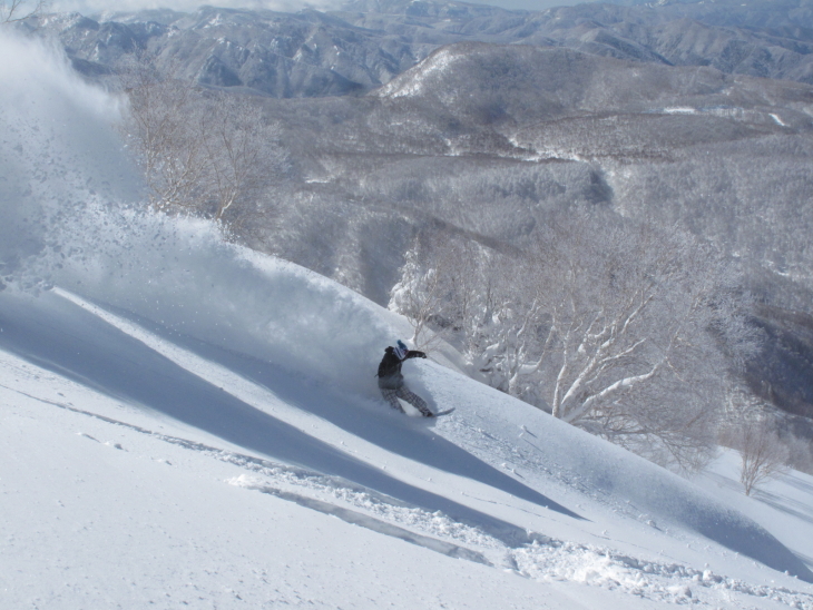 そしてゲレンデ上部はパウダー好きにはたまらない特別なエリア。名物「木落しコース」はパウダー好きには有名。ワイドバーンで、ステップアップにバッチリなパークが充実。