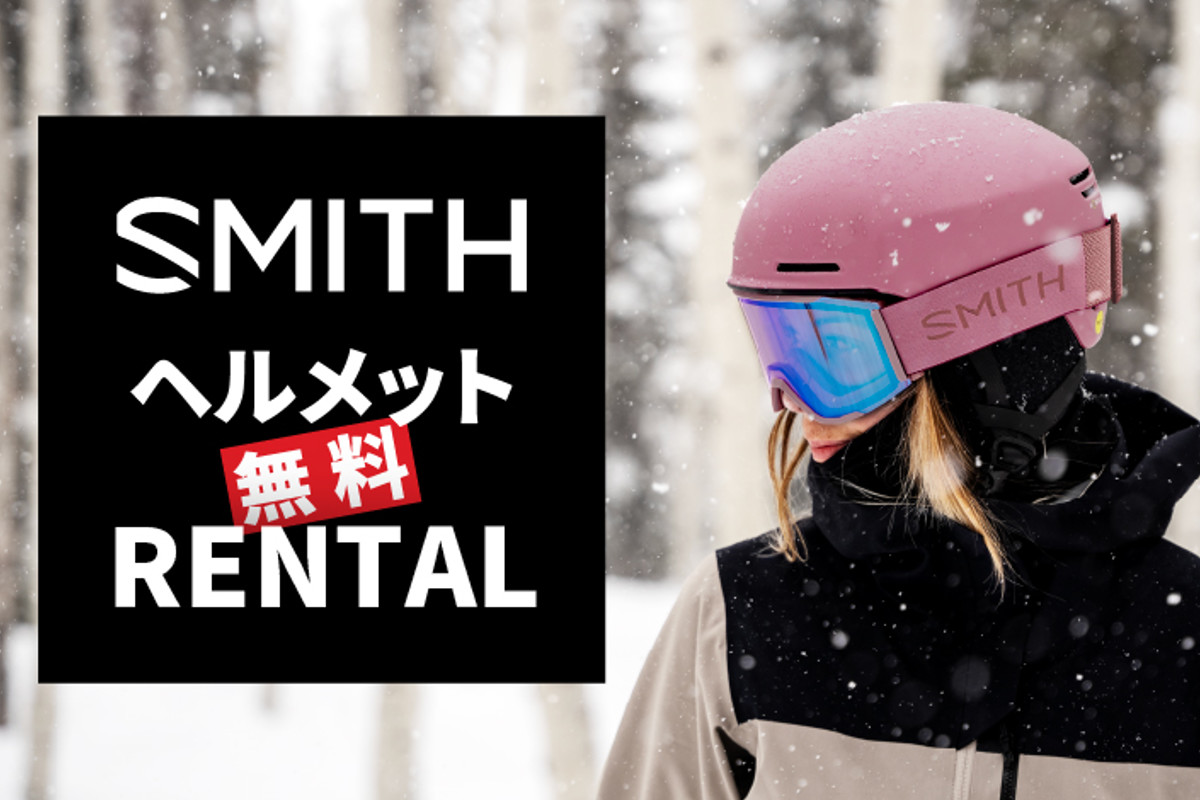 さらに無料レッスンだけでなく、「ヘルメット無料貸出」を毎日実施し、安心安全なスノボデビューを後押ししてくれる。貸出ヘルメットはキッズ~大人サイズまでをご用意。上級者であってもヘルメットの着用はとても大切なので、この機会に人気ブランドSMITHのヘルメットを利用してみよう。