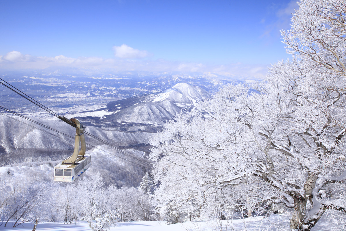 世界最大級166人乗りロープウェイに乗ってスキー場上部に行くと、初心者でもパウダースノーを楽しめる絶景コースが待っている。山頂エリアは上級コースしかないと思ったら大間違い!竜王スキーパークの山頂エリアは緩斜面が多いので、初心者でも上質な雪をめいいっぱい楽しめちゃうのだ。