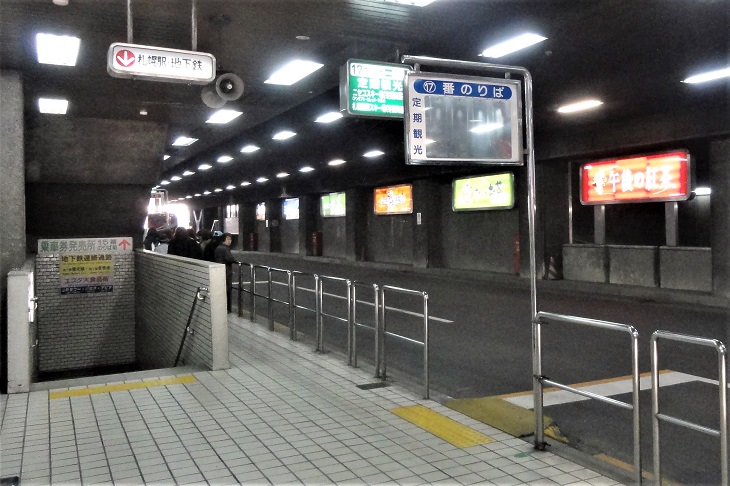 この乗り場にはバス停が複数ありますが、札幌藻岩山スキー場へ向かうバスは17番と表示があるバス停へ。
