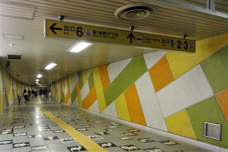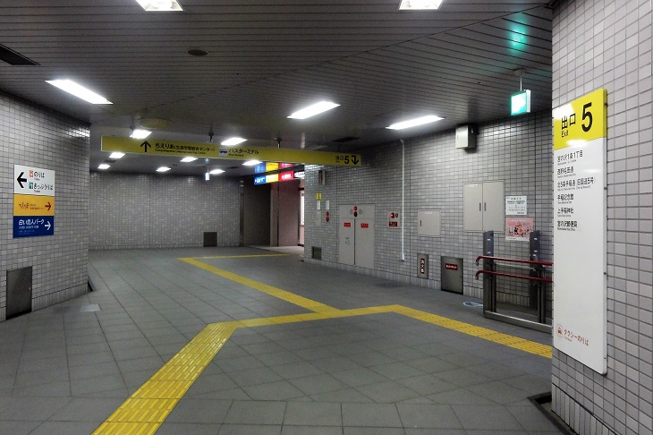円山公園駅で下車したら、バスターミナルの案内表示に従って地下通路を歩いて進みます。改札口から1、2分歩いたのち階段もしくはエスカレーターで上へあがるとバスの待合室に出ます。