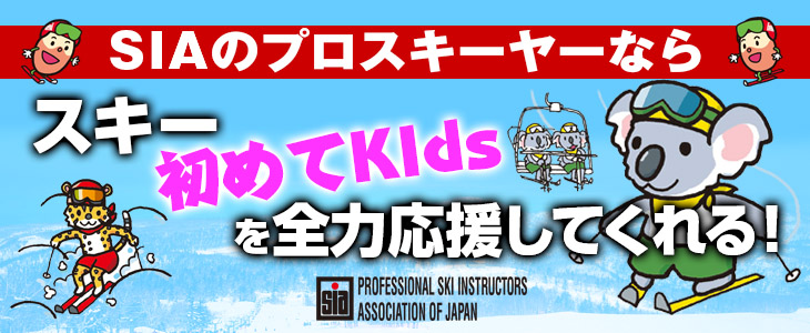 「初めてのスキーデビュー。ご両親もお子様もいろいろ不安が多いと思います。危なくないの? リフトには乗れる? スキー(雪)を好きになってくれるかしら? 必要な持ち物は? 考え始めたら、どんどん気になります。スキーはスピードを伴うスポーツ。楽しく滑るにはきちんとスピードをコントロールできること、山の安全ルールを理解することが必要です。ご両親が指導するとどうしてもお子様が甘えてしまったり、言うことを聞いてくれなかったりする場合もあります。そのため、ぜひスキースクールでのレッスン受講をお勧めします。SIAのスクールには日本プロスキー教師協会の認定を受けた教師が揃っています。安全で楽しく、お客様に合ったレンスンを展開できるプロ集団です。お子様のレッスンに関してはSIA公認校すべてに展開されているMy Ski Book(スキー上達手帳)を使用したキッズプログラムがあります。これから何を習い、何を目指していくのかが明確に提示され、安全への意識も育てていく内容になっています。お子様の目線に合わせた安全で楽しいレッスンで、スキーが好きになること間違いなしです!」