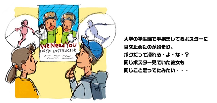 ゲレンデを颯爽と駆けていくスキーインストラクター達。誰もが憧れてしまう仕事だけど、インストラクターになるためのステップについてきちんと知っている人は案外少ないのではないでしょうか。今回の主人公、大学生のユキとケントも同じでした。ところが一枚のポスターから彼らのウインターシーズンはガラリと変わってしまったのです!