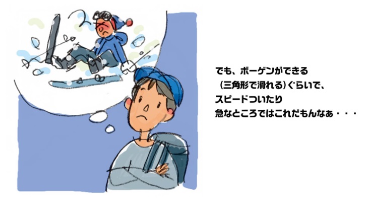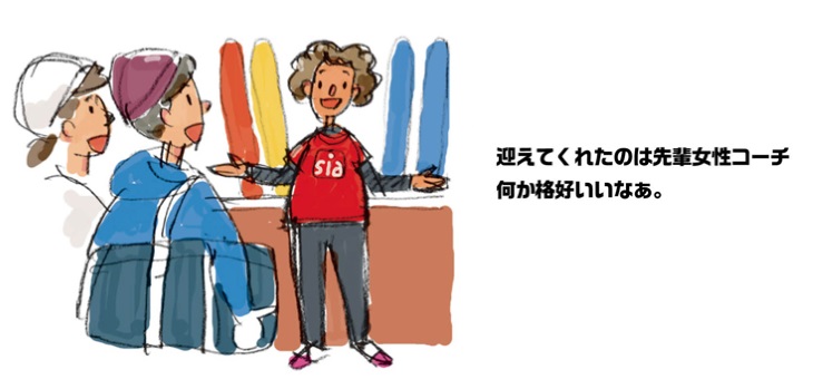 先輩の前で初めて滑りを披露するのは誰だって緊張するもの。無理にカッコよく滑ろうとせず、自分の滑走技術をしっかり見てもらうという意識で滑るのが重要です。荒削りだったり、クセがあったりは気にせずに。それはこれからの練習で直していけばいいんです!