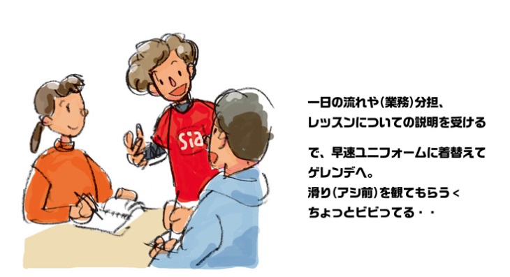 スキースクールで働くということは、ただレッスンを担当するだけではありません。用具の管理や受付業務、お客様の案内から、レッスン料金の取り扱いまで、その仕事は多岐に及びます。