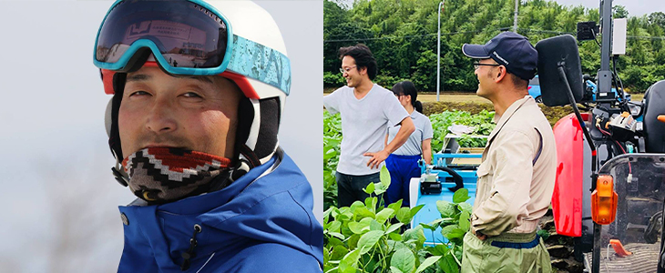 北海道蘭越町出身、現在44歳の大友さんはインストラクター歴25年のベテラン。夏の仕事は家業の農業(米、麦、大豆、種芋、枝豆など)に就いています。インストラクターとしての活動拠点であるニセコは、今や世界的スノーリゾートであり、パウダースノーはもとより食の魅力を求める海外からのビジターが多いことから、「世界のニセコで、地元農産物をもっと使ってもらえるように試行錯誤中」だとか。