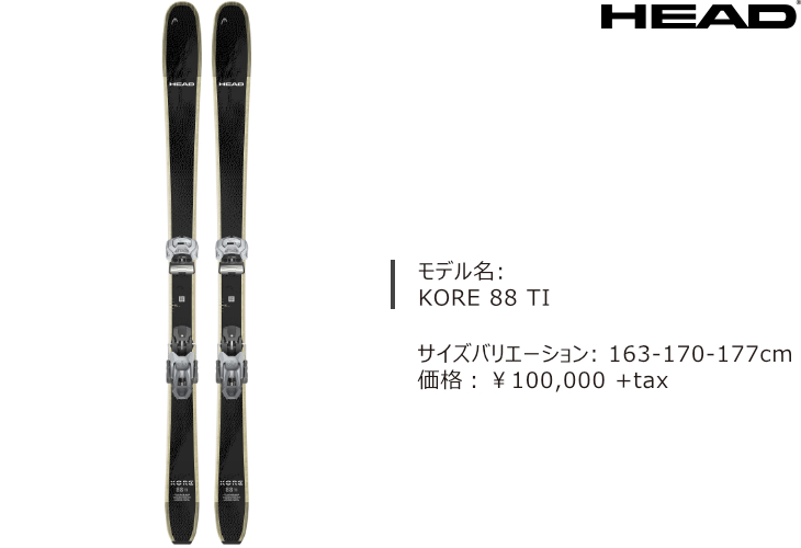 フリーライドスキーの代名詞であるKOREシリーズがフルモデルチェンジ! 新しいスキーはチタナールをスキーに挟み込み、より高速安定性とエッジグリップ力が向上した。素材を見直し吟味することで、スキーの重量は今までのKOREスキーとほぼ変わらず、特にセンター幅の細い88TIはゲレンデのカービングに最適なオールマウンテンスキーとなっている。