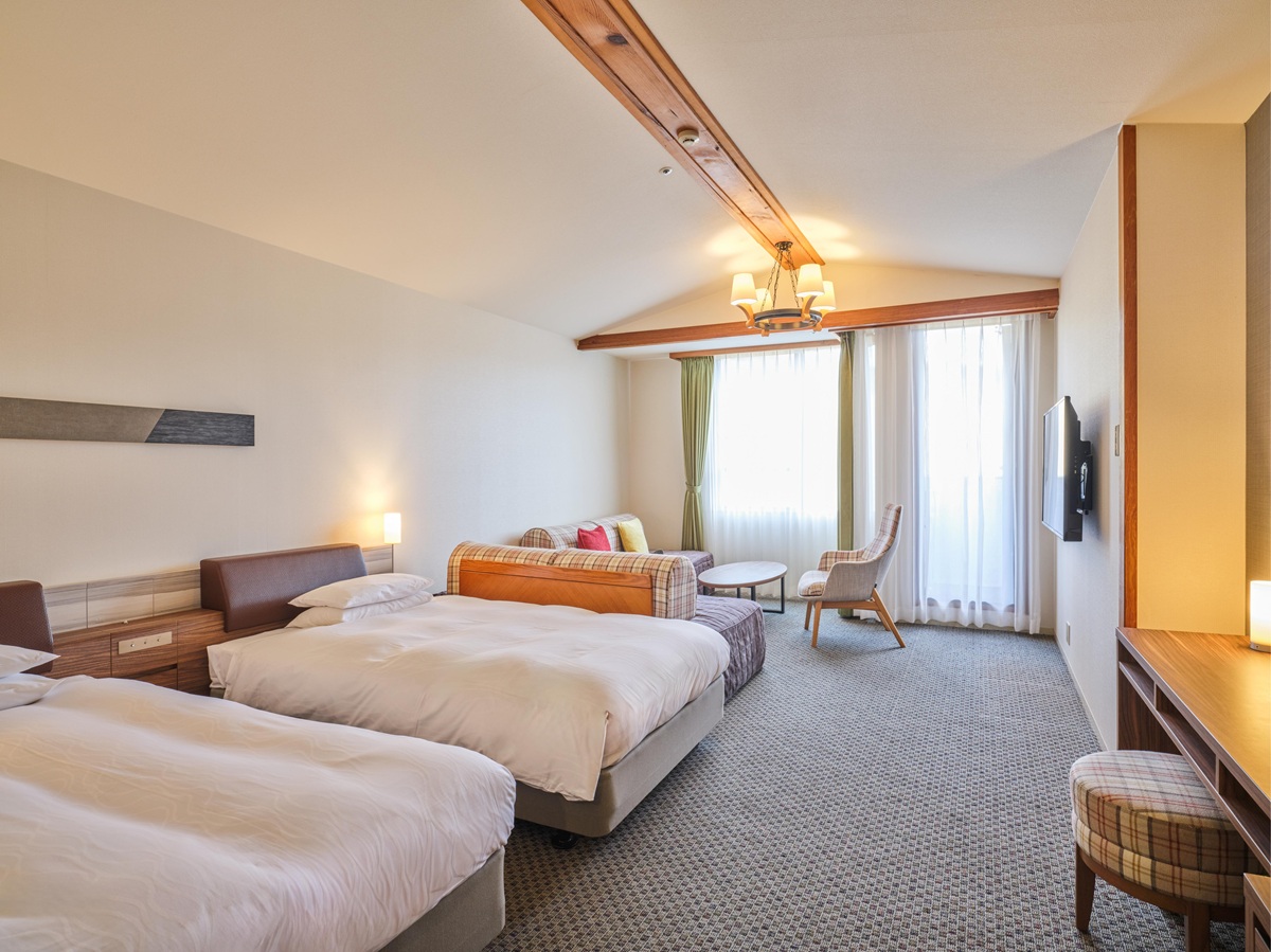 客室は居心地のよいカジュアルなインテリアルーム他、ファミリールーム、恐竜ラボルームなど多彩なタイプを用意。天然温泉の大浴場には露天風呂、ジャグジー、サウナも完備されており、一日の疲れをしっかりと癒せます。