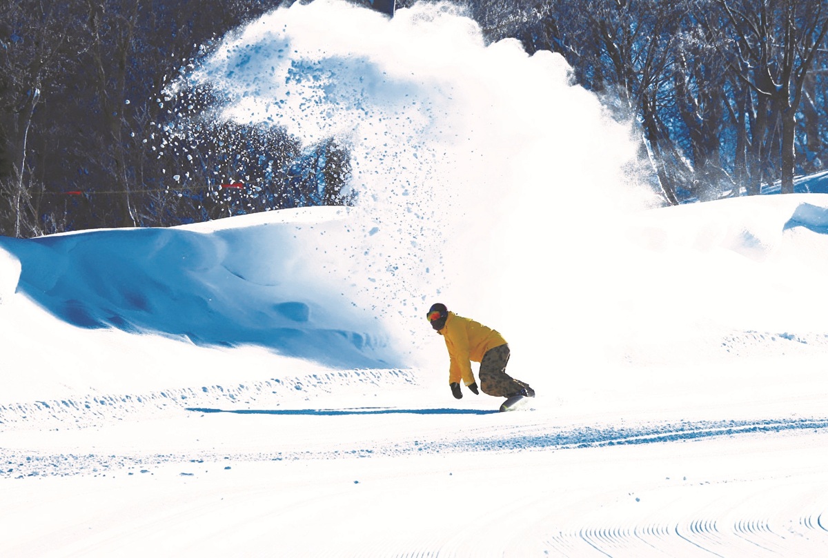 スキージャム勝山は、標高差710mのダイナミックな地形を活かした西日本屈指のスノーリゾート。最長滑走距離5,800m、全16コースを有し、3つのサイトに分かれたゲレンデは、初心者から上級者まで幅広いレベルに対応しています。中腹からベースまで続く「バラエティーサイト」は、緩斜面が中心の初心者・初級者向けエリア。「ファンタジーサイト」には全長1,600mのグラトリコース「ファンタジー1600」をはじめ、中級者がじっくり技を磨けるコースが揃っています。