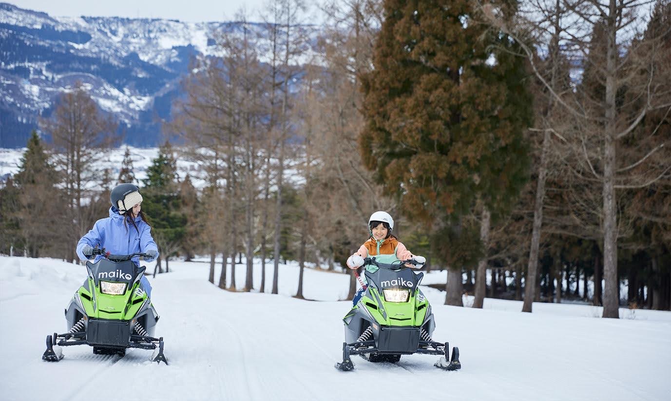 また、もうひとつの人気アクティビティ「スノーモービル体験」も、所要時間5〜6分と気軽にトライできる体験コースと、20〜30分ほど楽しめる本格的なツアーコースが用意されています。