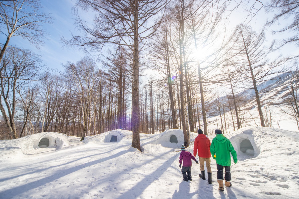 雪の森で本格的な雪遊びができるのが、コルチナワンダーヴィレッジ「雪あそびパーク」。入場料を払えば、かまくら体験、そり遊び、雪の森かんじきウォーキングができ、追加料金でかまくらランチ、雪上車アドベンチャーライド(要予約)、天然メイプルハント&メープルティータイム(要予約)などが楽しめます。