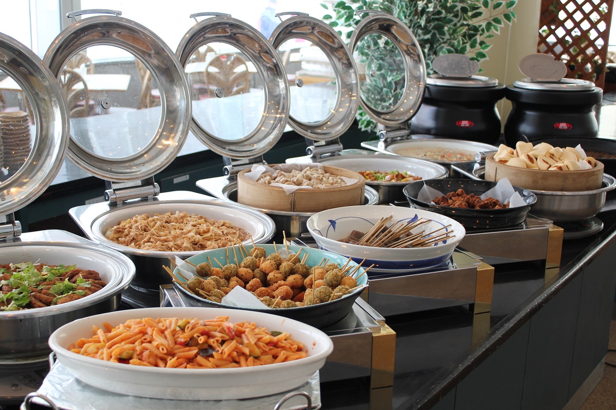 ホテルグリーンプラザ白馬の自慢が、信州の食材をふんだんに用いたグルメディナーバイキング。信州産の食材を使った和洋約50種類ものメニューがずらっと並ぶ。シェフが目の前で調理するライブキッチンでは、信州ブランドポークのステーキ、季節の揚げたて天ぷらなどを提供。皮パリパリの山賊焼き、おたぐりなどの信州の郷土料理も味わえます(季節により異なる)。