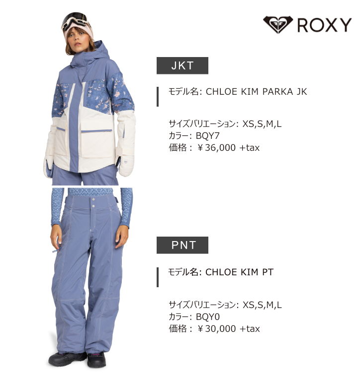2大会連続金メダルのクロエ・キムが手がけるシグネチャーウェア。長めの着丈とオリジナルフラワープリントのコンビネーションが印象的。ライディング中もフードが乱れる心配のないフード固定スナップは、ハーフパイプ選手ならではのリクエストから実現。ルーズなシルエットとダブルステッチのデザインがポイント。パンツは裾についたドローコードを使用すれば、ジョガーパンツ風に着用する事も可能なマルチモデル。ジャケット、パンツともに15K ROXY DryFlight®テクノロジー [15,000mm/15,000g]。ジャケットには雪の侵入を防ぐ着脱可能なパウダースカート付き、パンツはウエスト調節機能/雪の侵入を防ぐブーツゲイター付き。