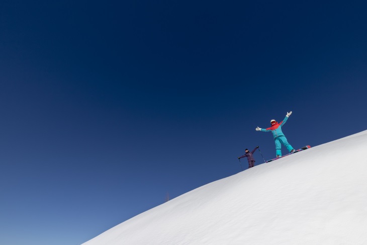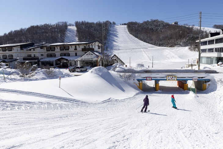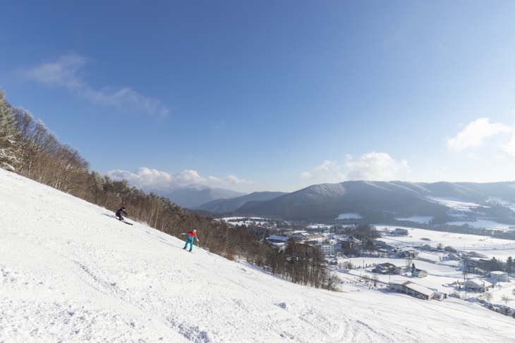 山頂からの滑走ルートを滑り終えると、そのまま奥ダボスのゲレンデにダイレクトイン。ダボスエリアは全体にワイドで斜度は緩めだが、眺望は根子岳山頂からの眺めにも負けないほどの美しい眺望を楽しむことができる。初心者や初級者だけでなく、ぜひ上級者も景色を堪能しながら滑ってみてほしい。いつもとはひと味違った、滑る楽しさが味わえるはずだ。