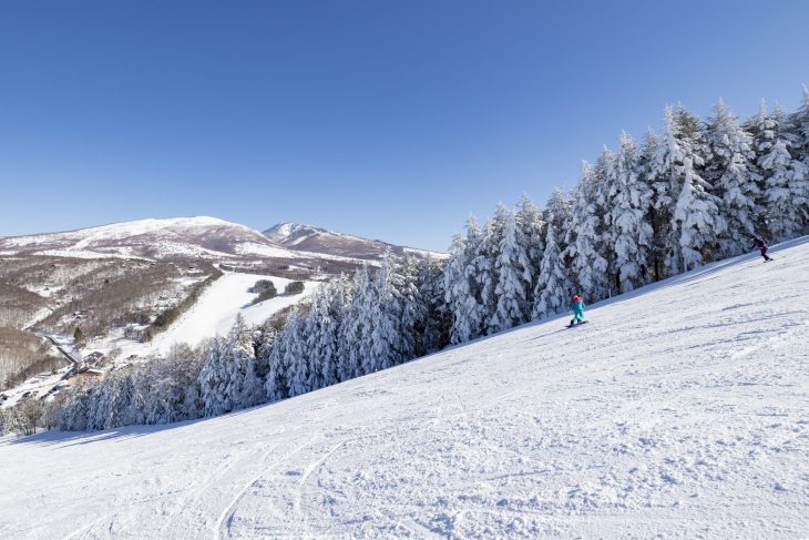 首都圏から約200km、車で約2時間40分、新幹線とバスで約2時間半の好アクセス。ベース標高1,250mの高原に広がるゲレンデはとにかく広く、バリエーション豊かな全60コース。低い気温、高い晴天率で、ゲレンデは荒れも少なくコンディションが良い状態で安定。雪上車に乗って行く「根子岳スノーキャットツアー」が大人気。根子岳山頂付近からの、360度大パノラマと樹氷は神秘的で圧巻。