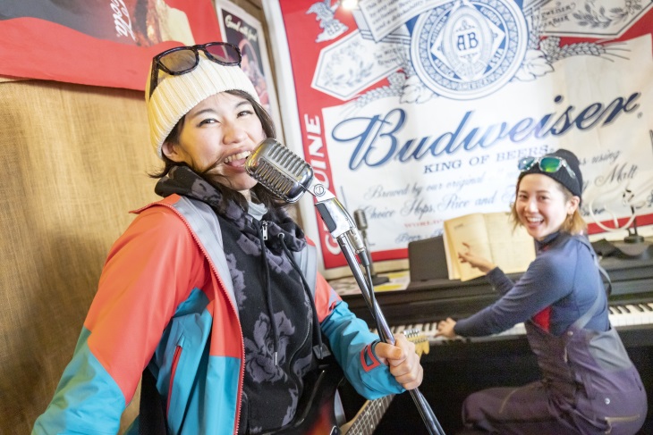 お腹いっぱいになった2人は、メルスのマスターから「帰る前にステージにあがってってよ!」と誘われ、店内の特設ステージで、すっかりその気になって即興コンサート(笑)。いつもとは違う楽しさを、最後まで味わうことができたと、ユイとモモヨは笑顔で菅平高原を後にして「また菅平に来ようね」と誓いあった。