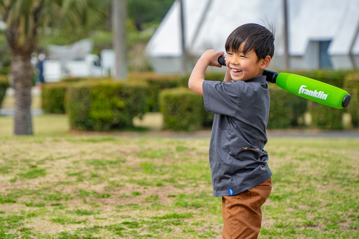 ラバーフォームのバットとボールでグリップも握りやすく3歳から楽しめるアイテム。子どもたちのスイングに合わせて、優しくボールを投げて、当たったら面白いほど飛んでいくので、誰でもスラッガー気分が味わえる! WBCブームで大盛り上がりのベースボールを体験して楽しんでみては!?