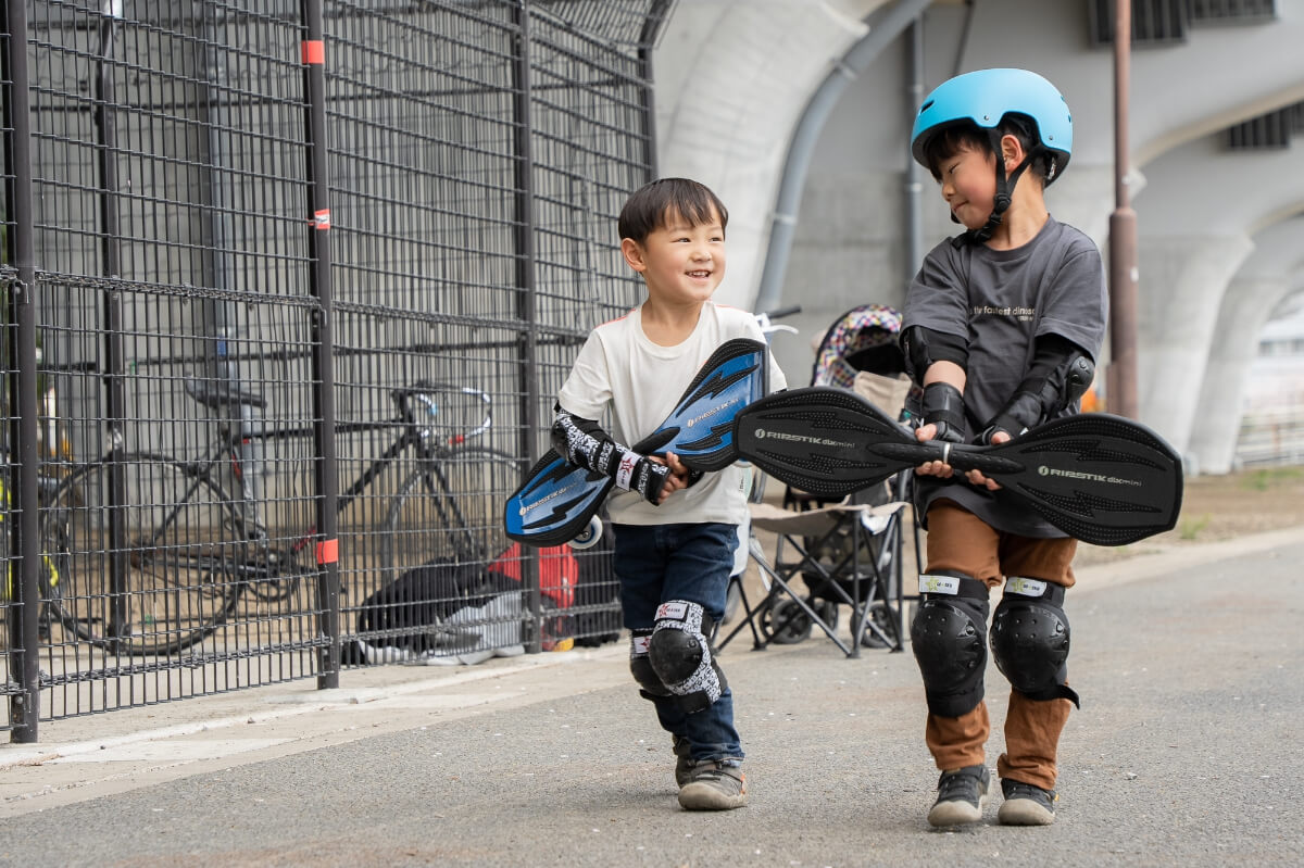 カラダをひねることで加速し前進する大人気のアイテム。体幹、バランス感覚を養うことができ、転んだときやボードから急に降りた際に、ボード自体も瞬時に停止するので、ボードだけ走っていってしまう心配がないのもポイント。消耗の早いウィール交換などのメンテナンスも、セルフで簡単にできる。