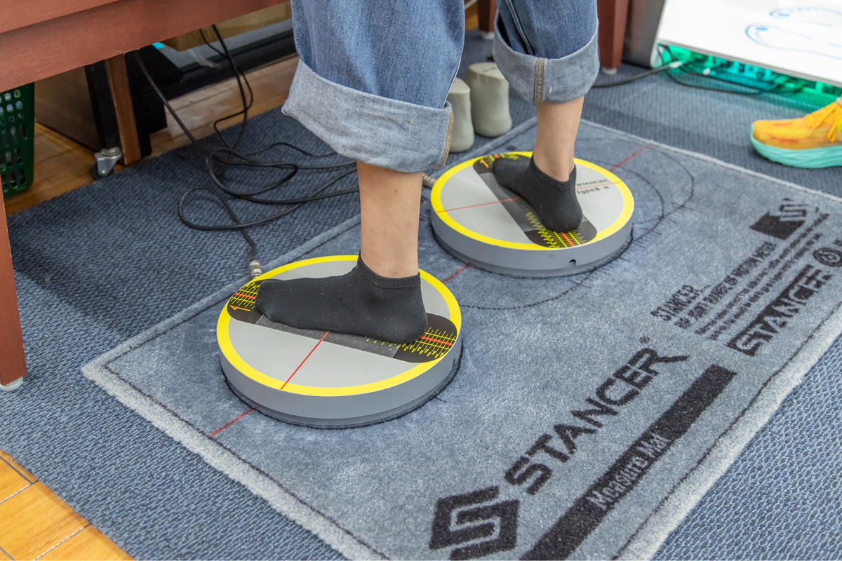 またボードへの取り付けは、自分にあったセッティングを提案してくれる「STANCER(スタンサー)」の利用もオススメ。STANCERは100万人を超えるスノーボーダーの身体データを基にソフト開発及びバージョンアップを随時行っており、その人にあったベストポジションを割り出してくれるという。STANCERに乗って股間節回旋可動範囲を計測することで左右の中心角度(ニュートラルポイント)を算出し、その値を基準にスノーボード上で立つ位置(向き、角度、足幅)の推奨値をライディングスタイルに合わせて3通り提案してくれる。怪我や事故の防止、疲労の軽減、そして滑りやすさや操作性の向上につながるので、セッティングに迷ったらぜひ試してみよう。
