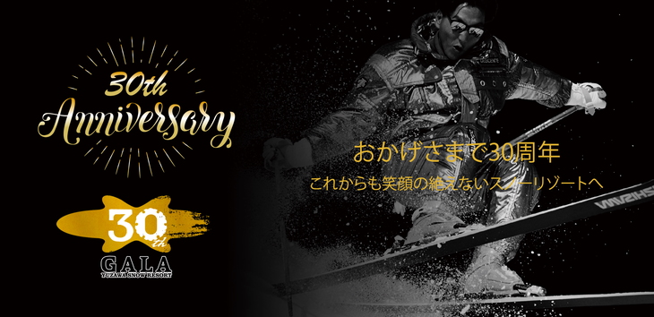 GALA湯沢スキー場は今季開業30周年を迎え、様々な記念イベントを開催しています。宿泊施設のペア招待券や、来季シーズン券、SALOMONのバックパックなど…入賞者には、様々な豪華景品が用意されています。