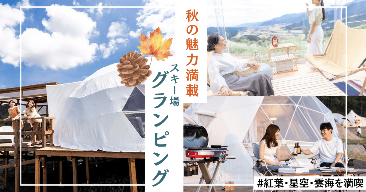 澄んだ空気と美しい紅葉に包まれる秋は、アウトドア体験には絶好の季節。標高の高い場所に位置するスキー場のなかには、グリーンシーズンに大自然とグランピングをかけ合わせたアクティビティが話題となっている施設もあります。今回は、秋の旅行先としてもおすすめなグランピング施設を、3つ厳選してご紹介します。