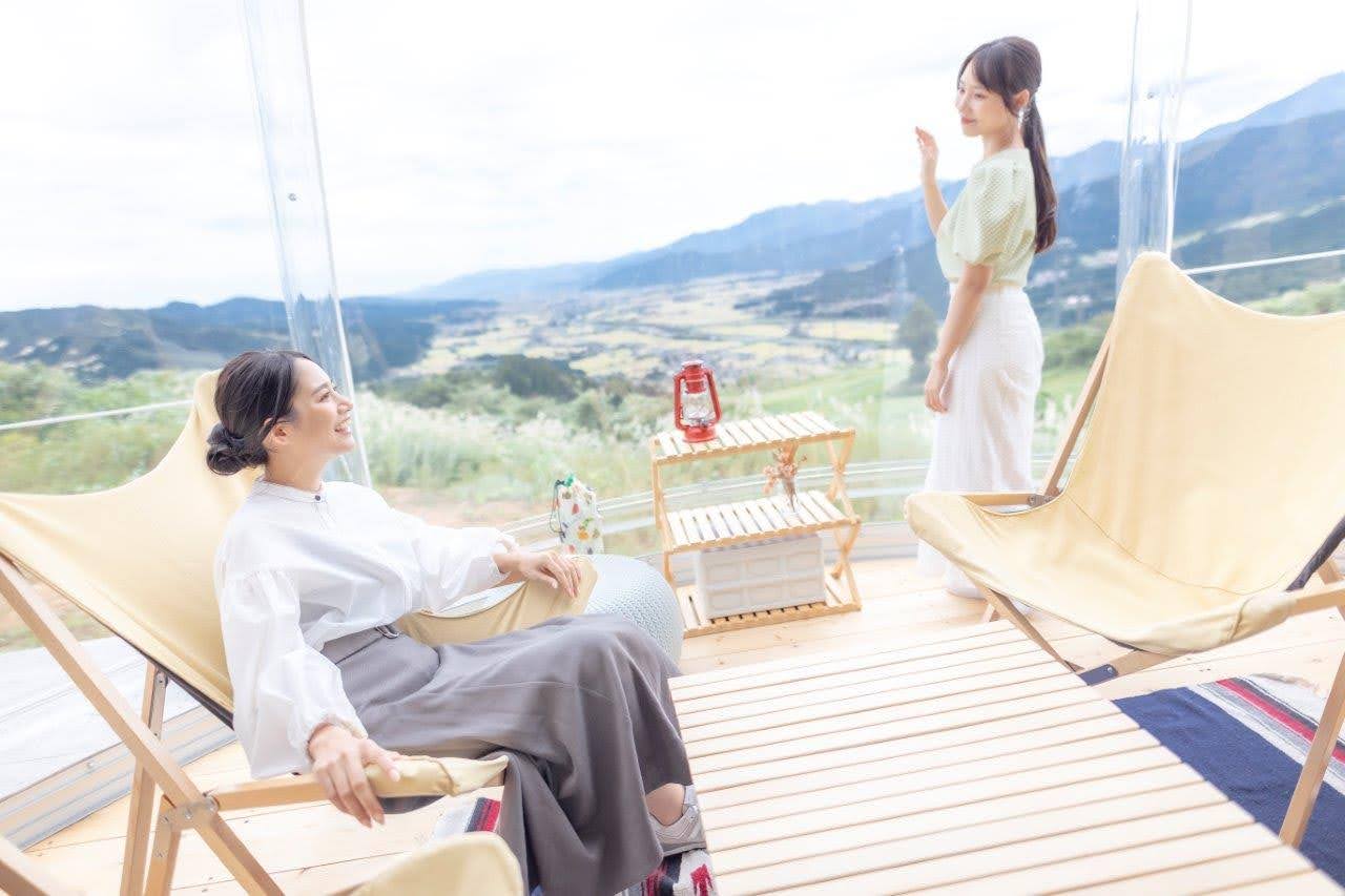 「SORA GLAMPING RESORT」は、ハンモックとバーベキューエリア付きのドームテントを14棟+スイートルーム使用のキャビンタイプ1棟、計15棟そなえたグランピング施設。宿泊者は滞在中ロープウェイが乗り放題で、雲海や絶景に出合えるチャンスがぐっと高まるそう。日常では味わえない大自然の清涼感と満天の星空が楽しめるほか、色鮮やかなディナーボックスとBBQメニューが贅沢なディナータイムを演出してくれます。